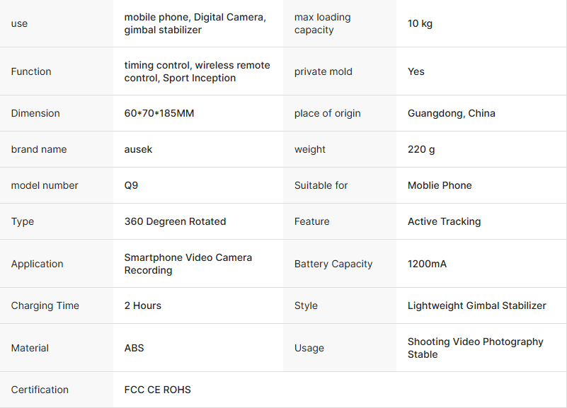 成为第一个“Auto Tracking Smartphone Mobile Professional Cell Phone Stabilizer Gimbal Stabilizer for Phone and Camera” 的评价者
